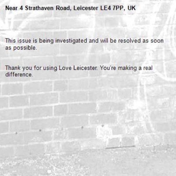-4 Strathaven Road, Leicester LE4 7PP, UK 14/02/2026 10:33 This issue is being investigated and will be resolved as soon as possible. Thank you for using Love Leicester. You’re making a real difference.