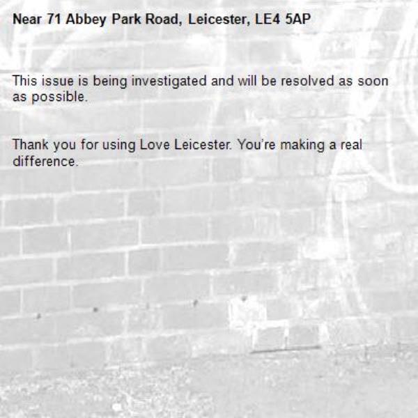 Near 71 Abbey Park Road, Leicester, LE4 5AP