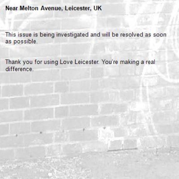 -Melton Avenue, Leicester, UK 14/01/2026 08:47 This issue is being investigated and will be resolved as soon as possible.