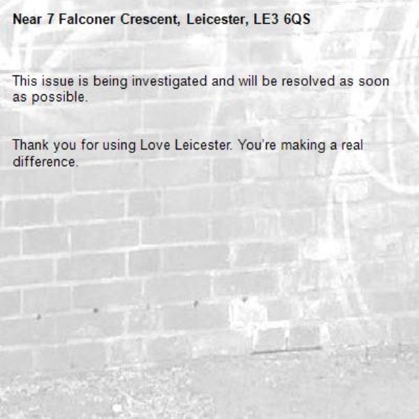 -7 Falconer Crescent, Leicester, LE3 6QS 07/01/2026 08:03 This issue is being investigated and will be resolved as soon as possible.