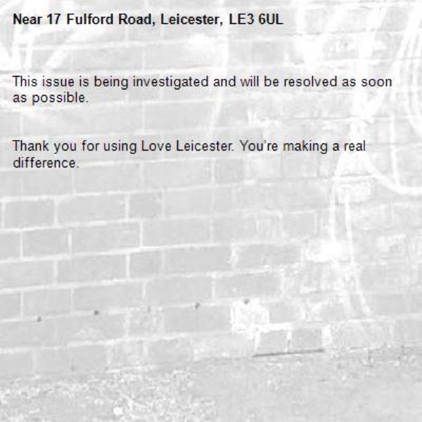 -17 Fulford Road, Leicester, LE3 6UL 20/01/2026 08:37 This issue is being investigated and will be resolved as soon as possible.
