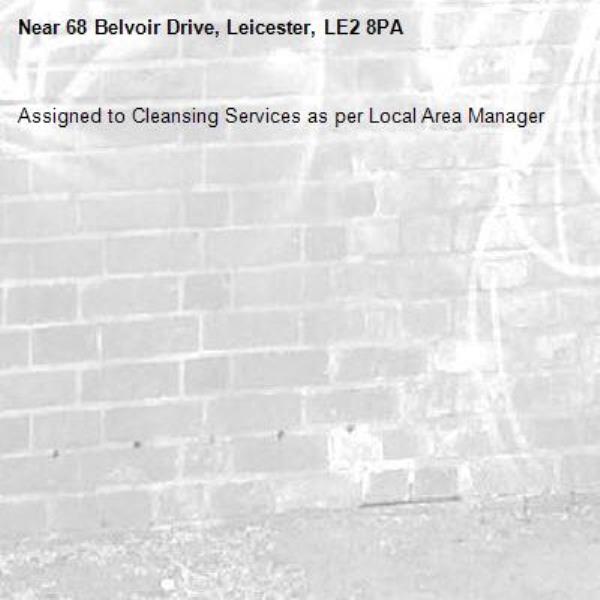 -68 Belvoir Drive, Leicester, LE2 8PA 01/04/2026 13:43 Assigned to Cleansing Services as per Local Area Manager