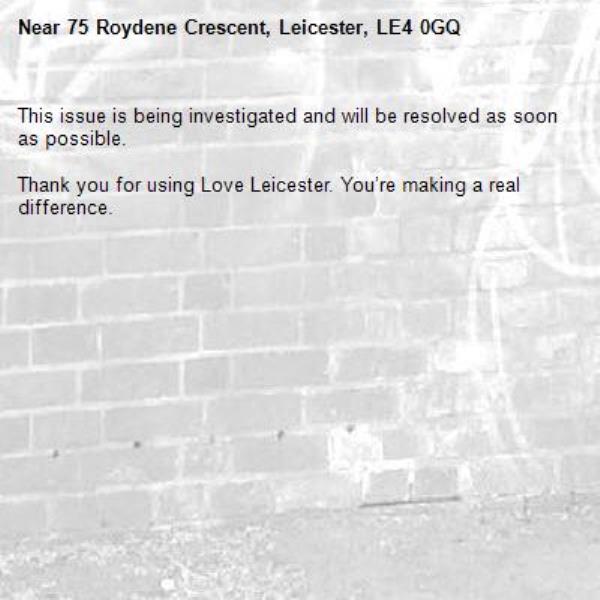 Near 75 Roydene Crescent, Leicester, LE4 0GQ