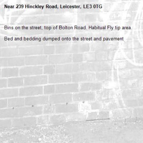Bins on the street, top of Bolton Road. Habitual Fly tip area.