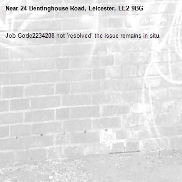 Job Code2234208 not 'resolved' the issue remains in situ.