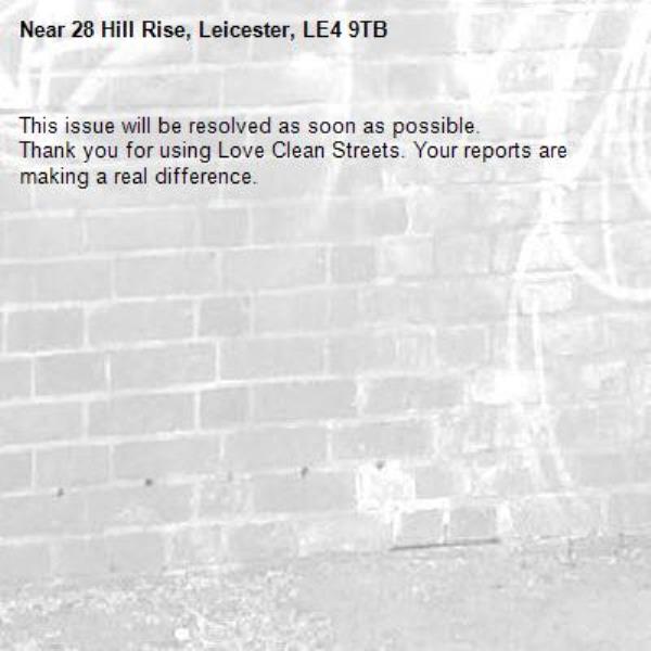Near 28 Hill Rise, Leicester, LE4 9TB