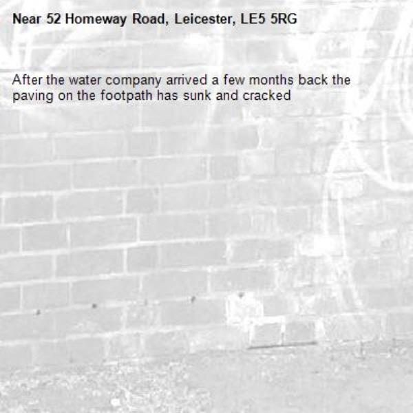 After the water company arrived a few months back the paving on the footpath has sunk and cracked