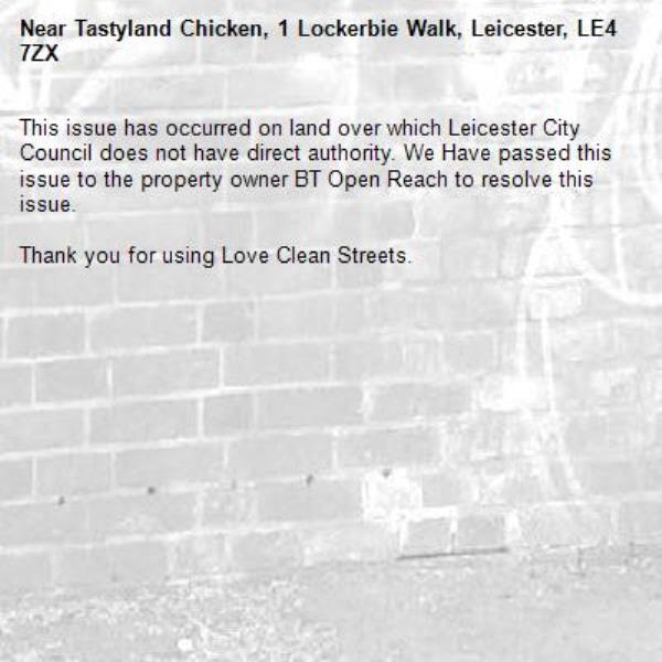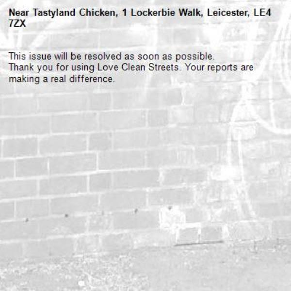 Near Tastyland Chicken, 1 Lockerbie Walk, Leicester, LE4 7ZX