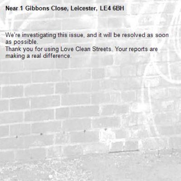 Hi, a mattress, glass bottles, beer cans, food and other detritis has been dumped on the wall next to 1, Gibbons Close, Leicester, which is next to the fire exit wall. The rubbish is behind a 3ft parapet/wall that surrounds the car park. The car park has a perimeter wall that covers 3 sides of it. There is also rubbish dumped in the walled section covering the other 2 sides of the car park. A proper clean up is needed to cover the whole walled area around the car park 'hand over fist.'