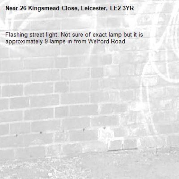 Flashing street light. Not sure of exact lamp but it is approximately 9 lamps in from Welford Road