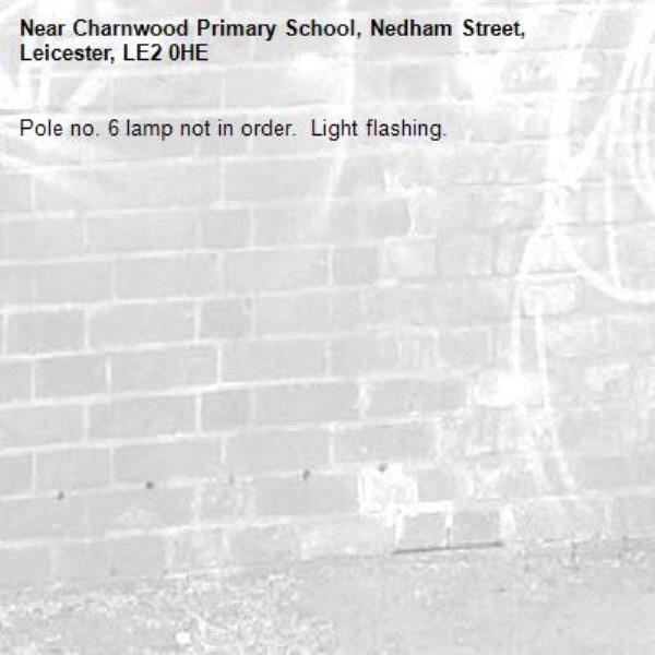 Pole no. 6 lamp not in order. Light flashing.