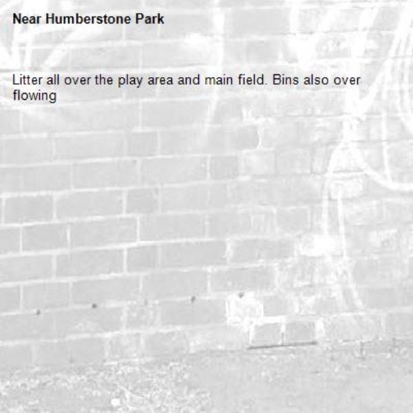 Litter all over the play area and main field. Bins also over flowing
