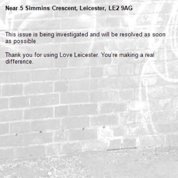 Near 5 Simmins Crescent, Leicester, LE2 9AG