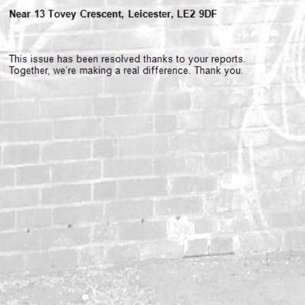 Near 13 Tovey Crescent, Leicester, LE2 9DF