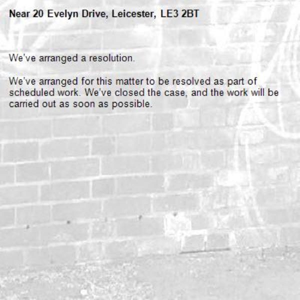 -20 Evelyn Drive, Leicester, LE3 2BT 19/03/2026 08:01 We’ve arranged a resolution.