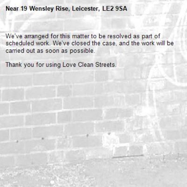 We’ve arranged for this matter to be resolved as part of scheduled work. We’ve closed the case, and the work will be carried out as soon as possible.