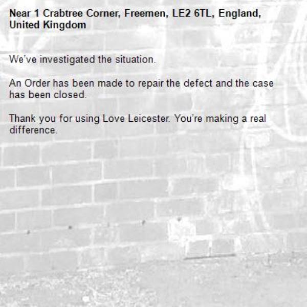 Near 1 Crabtree Corner, Freemen, LE2 6TL, England, United Kingdom