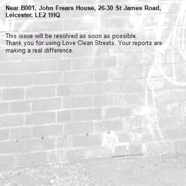 Near B001, John Frears House, 26-30 St James Road, Leicester, LE2 1HQ