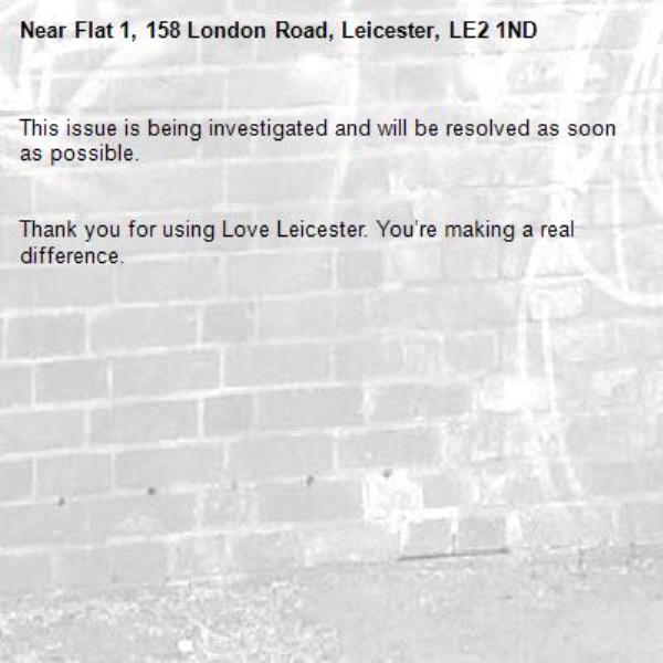 -Flat 1, 158 London Road, Leicester, LE2 1ND 26/11/2025 09:09 This issue is being investigated and will be resolved as soon as possible.