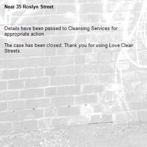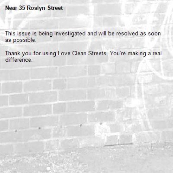 The rubbish left outside by the household at number 35 Roslyn Street is still there and causing an obstruction to the footpath. This has been left outside no 35 for a approx 6 weeks on going.