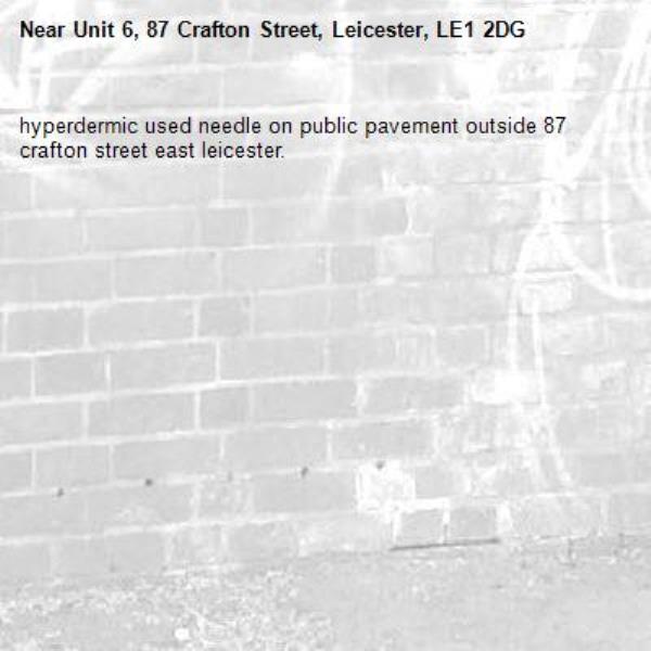 hyperdermic used needle on public pavement outside 87 crafton street east leicester.