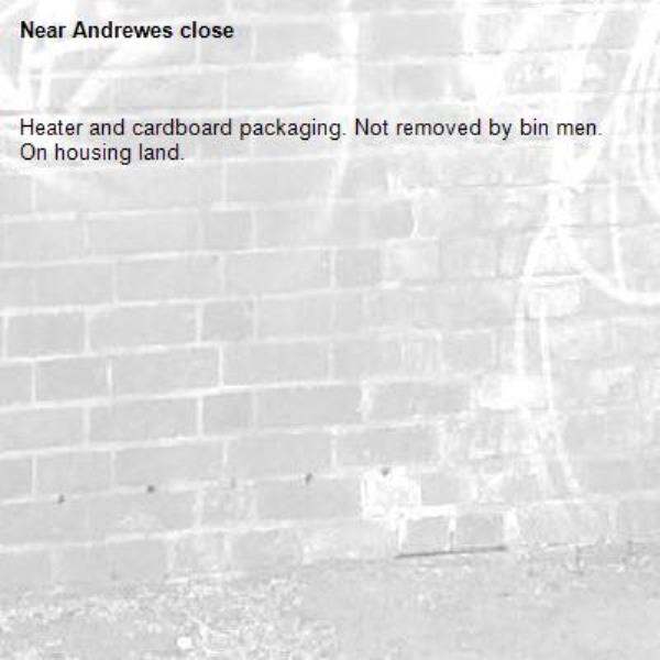 Heater and cardboard packaging. Not removed by bin men. On housing land.
