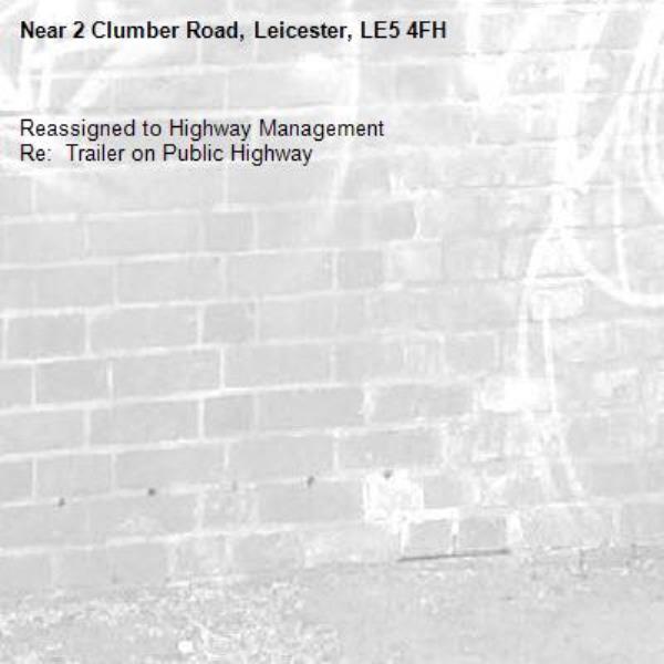 Re:  Trailer on Public Highway-2 Clumber Road, Leicester, LE5 4FH 06/11/2025 15:36 Reassigned to Highway Management Re: Trailer on Public Highway