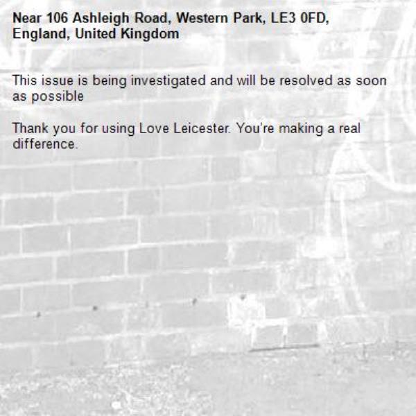 Near 106 Ashleigh Road, Western Park, LE3 0FD, England, United Kingdom