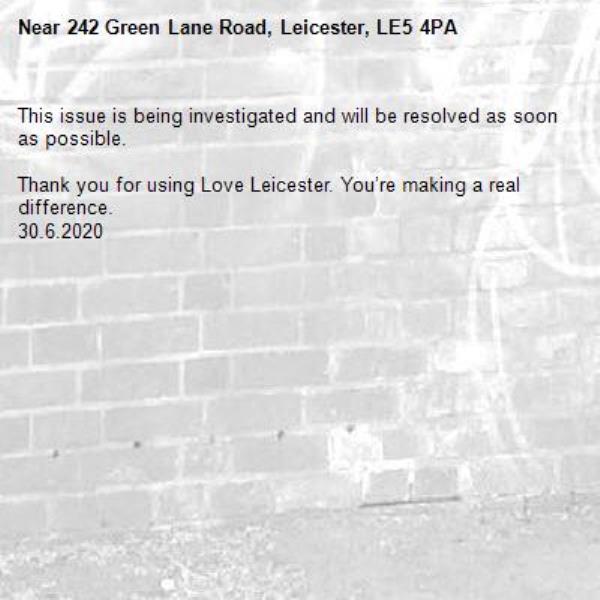 30.6.2020-242 Green Lane Road, Leicester, LE5 4PA 30/06/2020 11:55 This issue is being investigated and will be resolved as soon as possible.