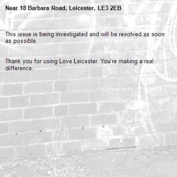 -18 Barbara Road, Leicester, LE3 2EB 16/01/2026 08:27 This issue is being investigated and will be resolved as soon as possible.