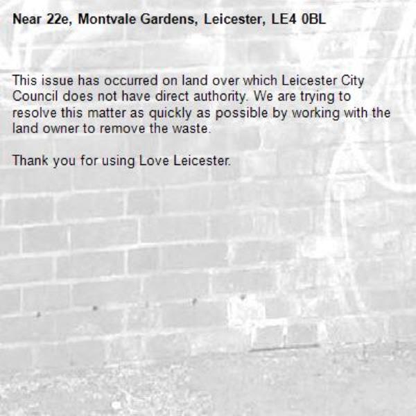 Near 22e, Montvale Gardens, Leicester, LE4 0BL