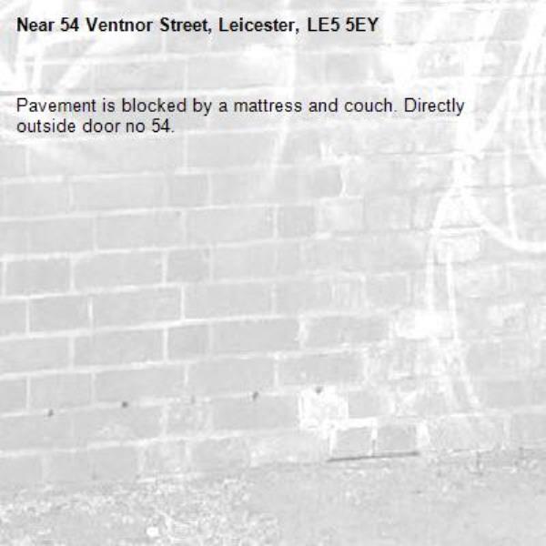 Pavement is blocked by a mattress and couch. Directly outside door no 54.
