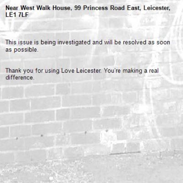 20/03/2026 08:39 This issue is being investigated and will be resolved as soon as possible. Thank you for using Love Leicester. You’re making a real difference