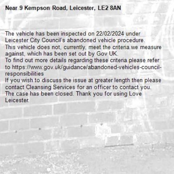 Near 9 Kempson Road, Leicester, LE2 8AN