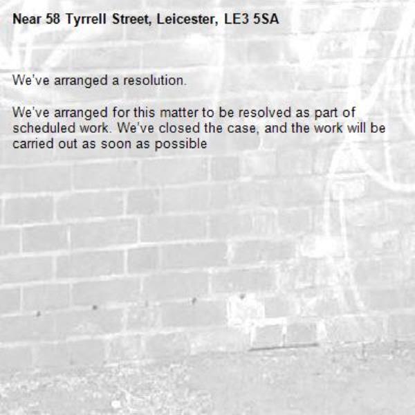We’ve arranged for this matter to be resolved as part of scheduled work. We’ve closed the case, and the work will be carried out as soon as possible