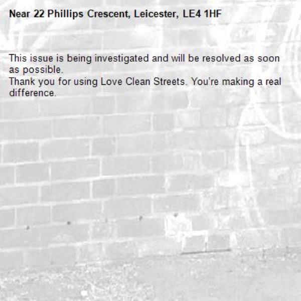 Near 22 Phillips Crescent, Leicester, LE4 1HF